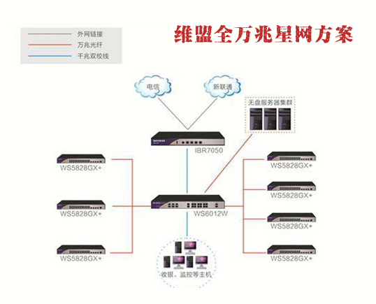 为了给全国广大的网吧朋友带来飞一般的上网速度,维盟给出了维盟全万兆星网方案: