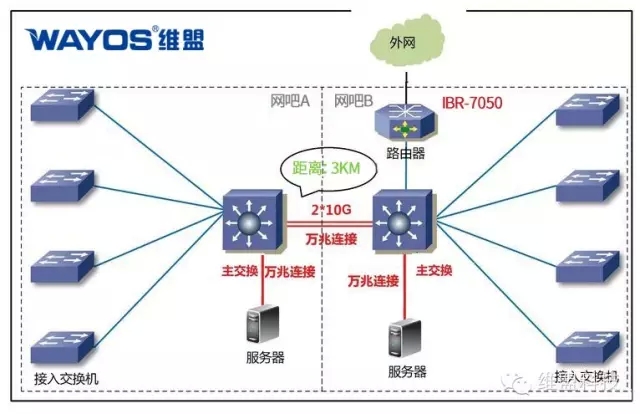 跨越3KM,只为与你万兆互联:维盟IBR-7050完美实现两网吧网络共享!