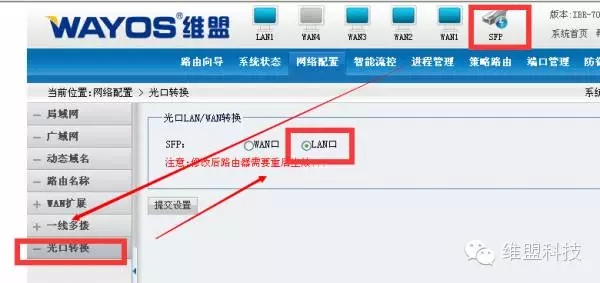 通过“光口转换”,将WAN口转换为LAN口,操作如下: