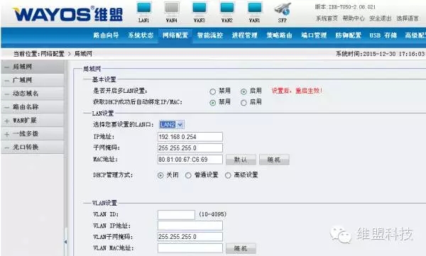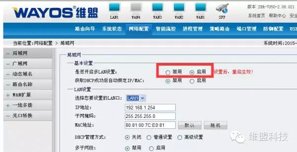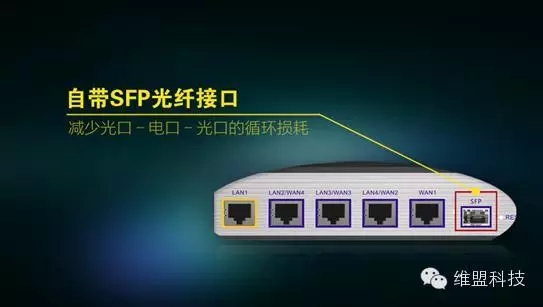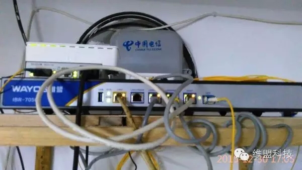 下面直接介绍我们是如何利用维盟的IBR-7050路由来解决两家网吧的网络,达到资源共享。其实功能和原理很简单,就是利用那个被大家经常忽视的SFP口,这是一个千M光口,可以利用起来做路由的WAN口,也可以用来做路由的LAN口。下面我们利用他的LAN口功能来达到实现两家网吧共享路由的目的!