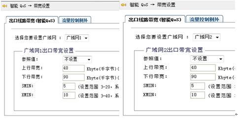 如下图7所示:使用2条1兆的电信ADSL,在出口带宽处设置好实际的出口带宽