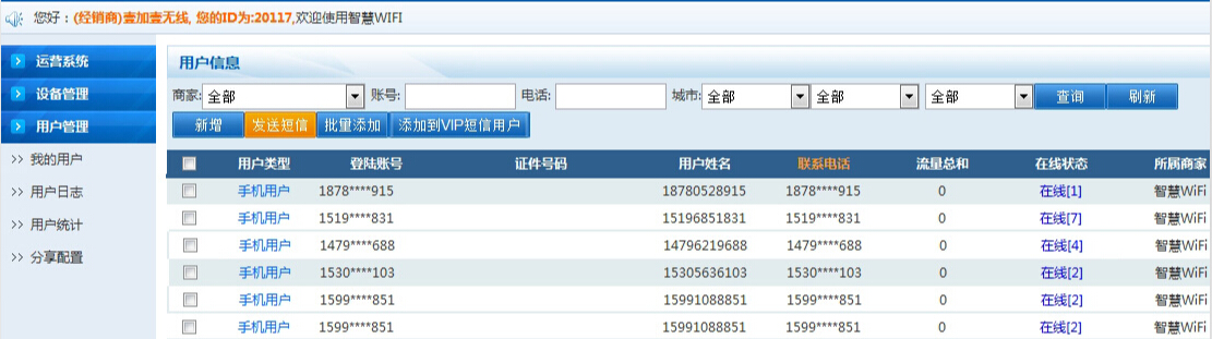 6、需有一个数据后台,能集中搜集用户上网的登陆方式,如手机号信息(免费用户),并可相应做出宣传推广;