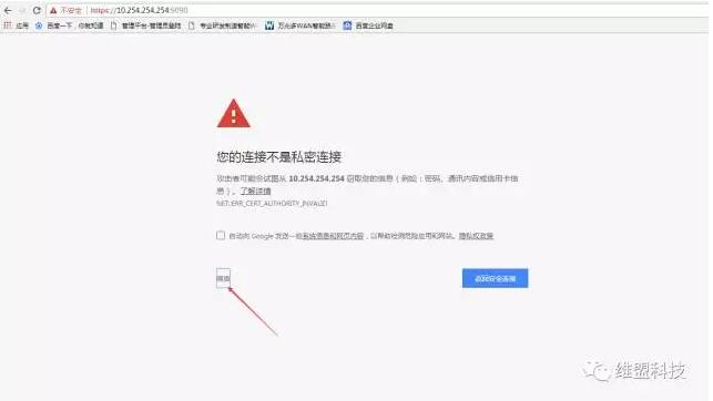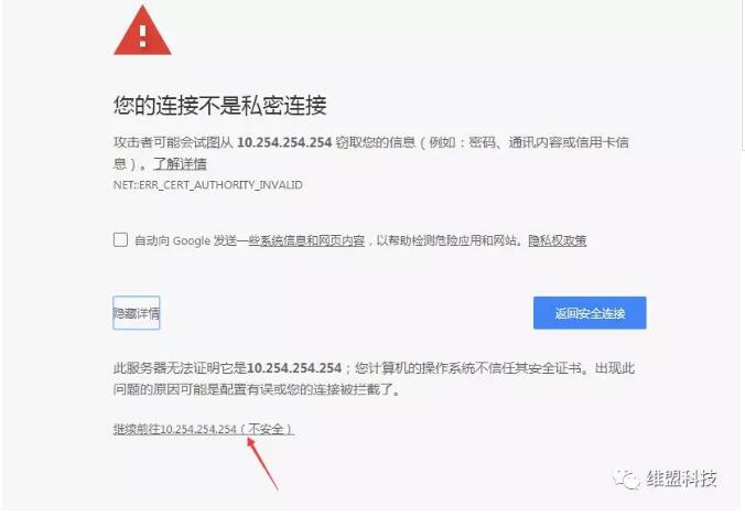 若登陆时提示连接不安全,可点击高级然后继续前往(以谷歌浏览器为例);